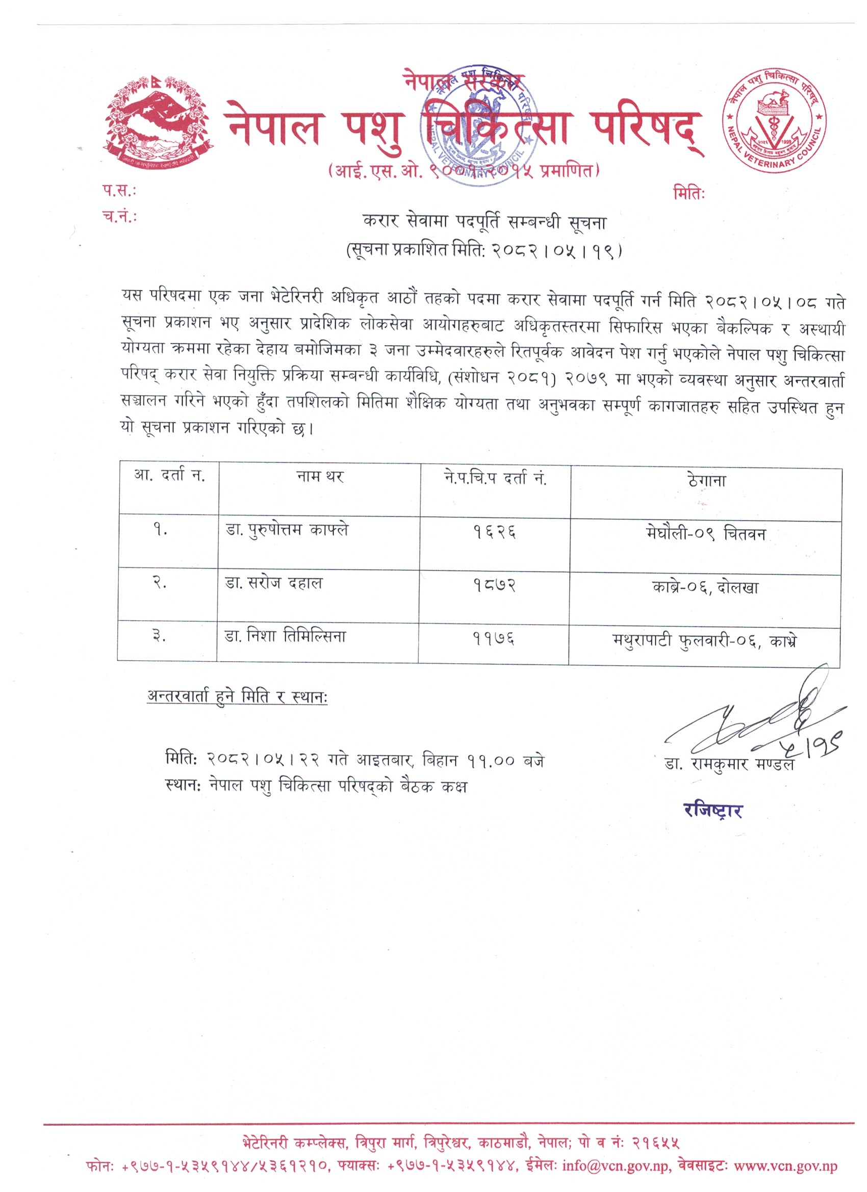 करार सेवामा पदपूर्ति सम्बन्धि सूचना